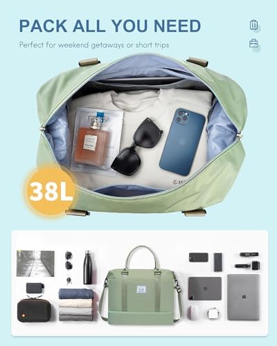 【Versatile Overnight bag】This weekender bag has many multiple internal and external organizational pockets, which ensure you have a place for everything. With its durable construction, lightweight design, and stylish look, this duffle bag can be used as travel bag, gym bag, workout bag, hospital bag, weekend bag, overnight bag and even as a mom bag.