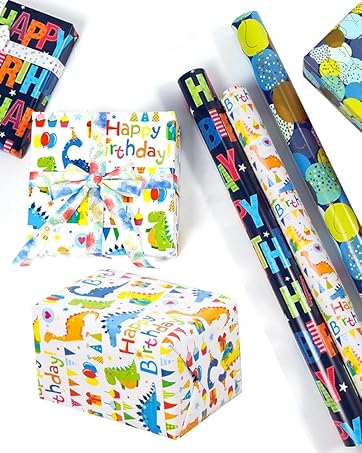 Birthday Dinosaur Gift Wrapping Paper Kids Wrap Paper Rolls Happy Birthday Wrapping Paper