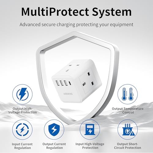 8 in 1 European Plug Adaptor: This UK to European plug adapter extends an 3 Standard UK plug(3250W), 4 USB ports(1 Type C Port and 3 USB Ports) , also with 1 Universal Shaver / Toothbrush Adaptor, it will adapt to all your charging needs while traveling.